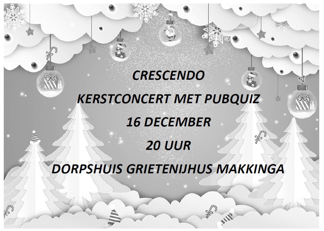 Wilt u al goed in de kerstsfeer komen met mooie kerstmuziek. Crescendo Makkinga geeft een spetterend kerstconcert.