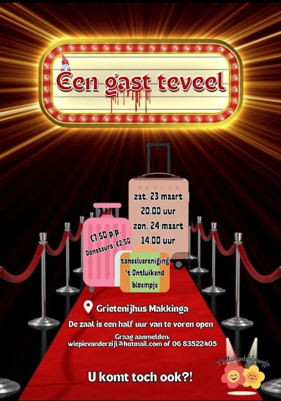 't Ontluikende Bloempje is al sinds 1878 de amateur toneel vereniging van Makkinga. Elk seizoen wordt weer een nieuwe toneeluitvoering ge......