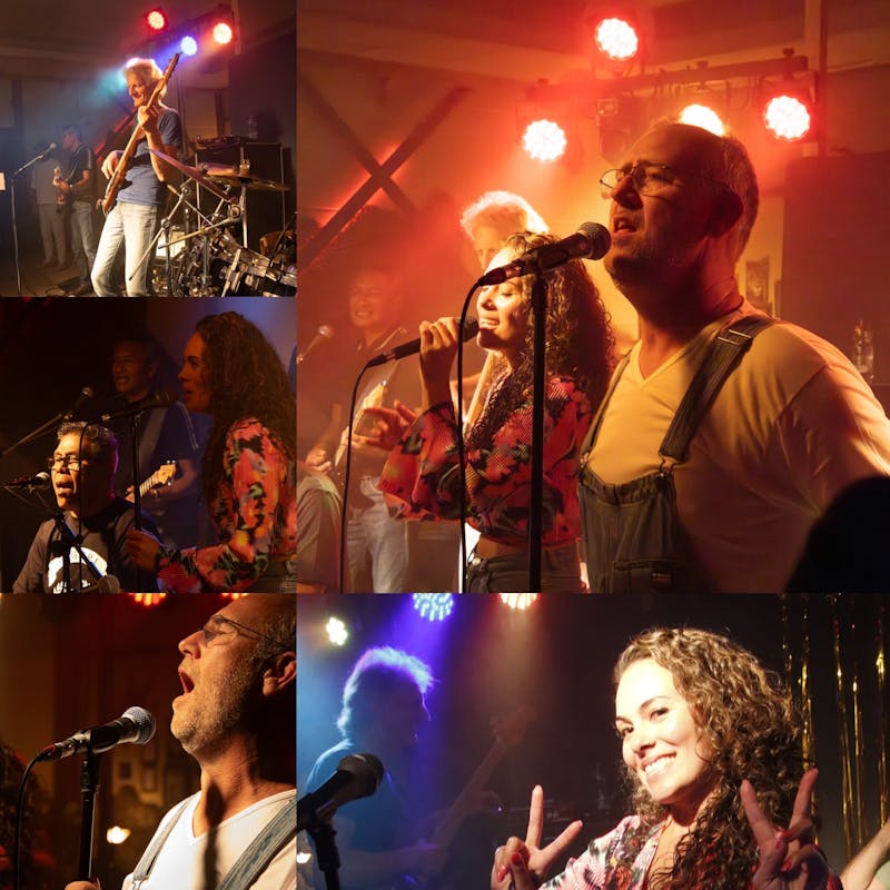 Vocalisten Adinda en Jelle worden begeleid door een strakke band bestaande uit Jan Paul op bas, Saly op gitaar, Eddy op toetsen, Peter op drums en Bennie op percussie voor die extra groove.