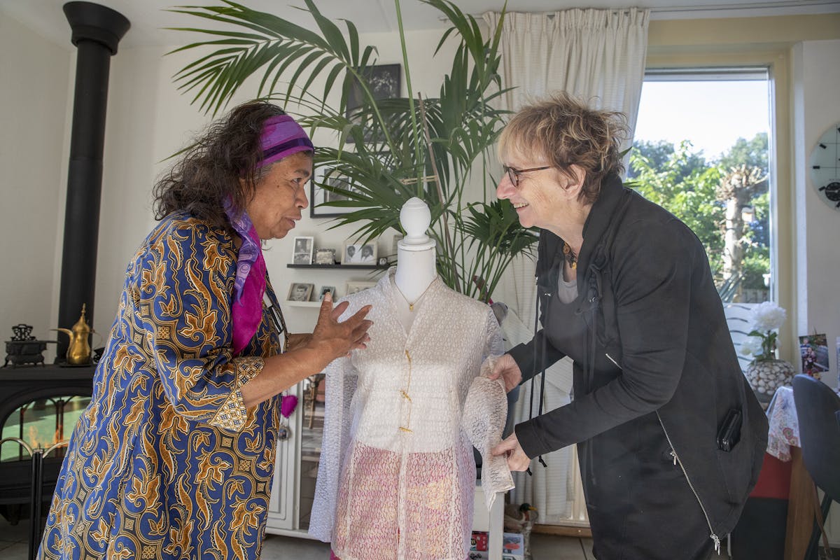 Zo is er o.a. een mustisa te zien zijn, een onderdeel van de Molukse bruidskleding. Op fluwelen of satijnen stof wordt een versiering geborduurd met pailletten en kralen.